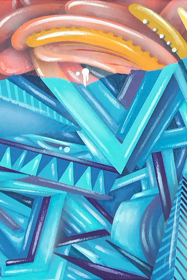 Aérosol et Posca sur toile - 73x92 cm. Caisse américaine bois effet chromé.