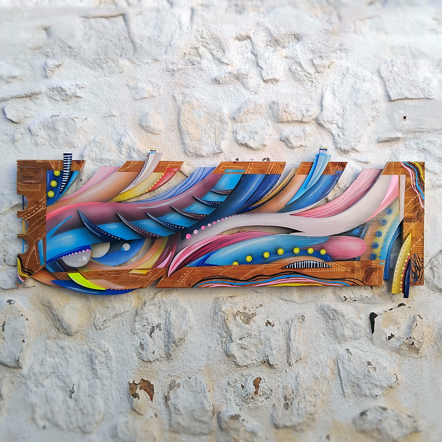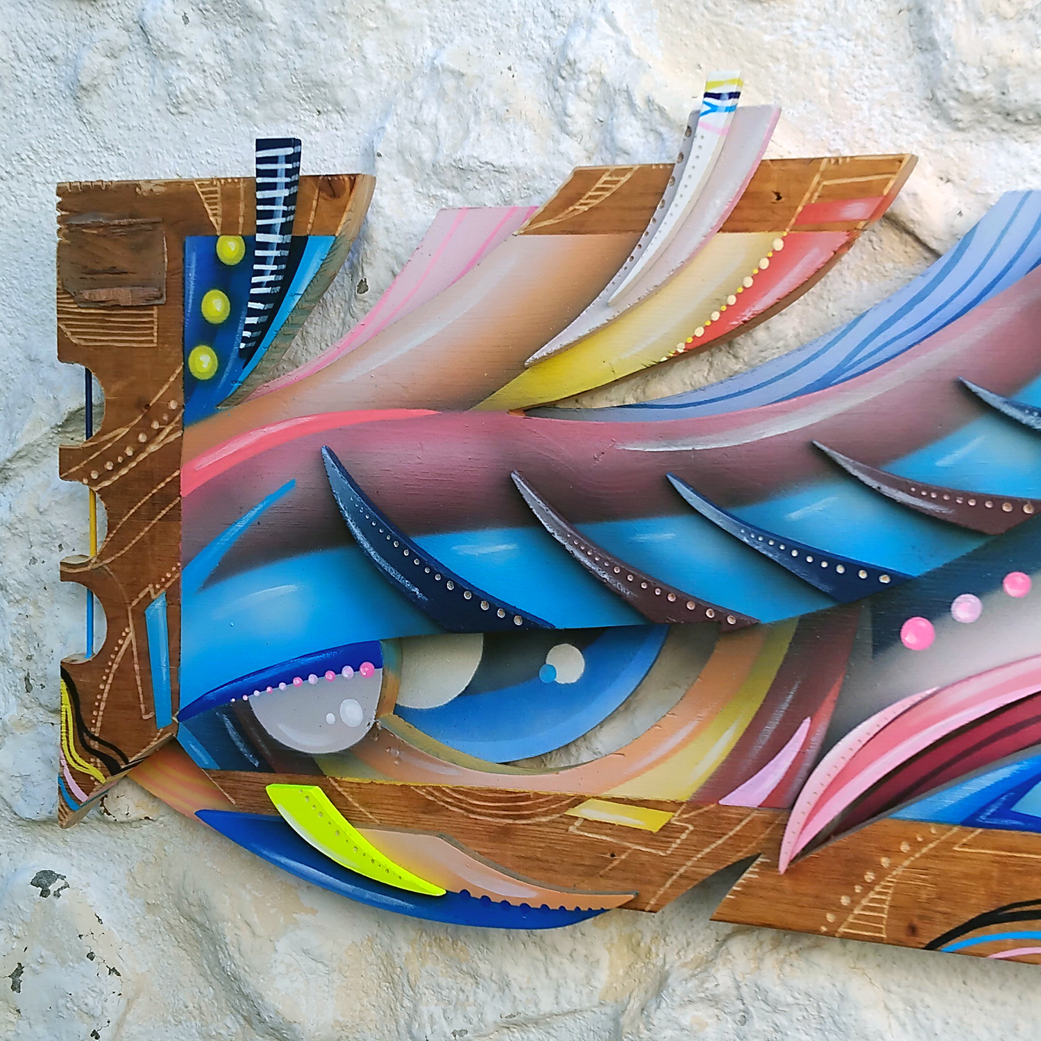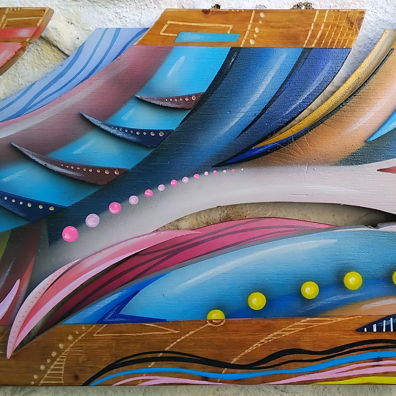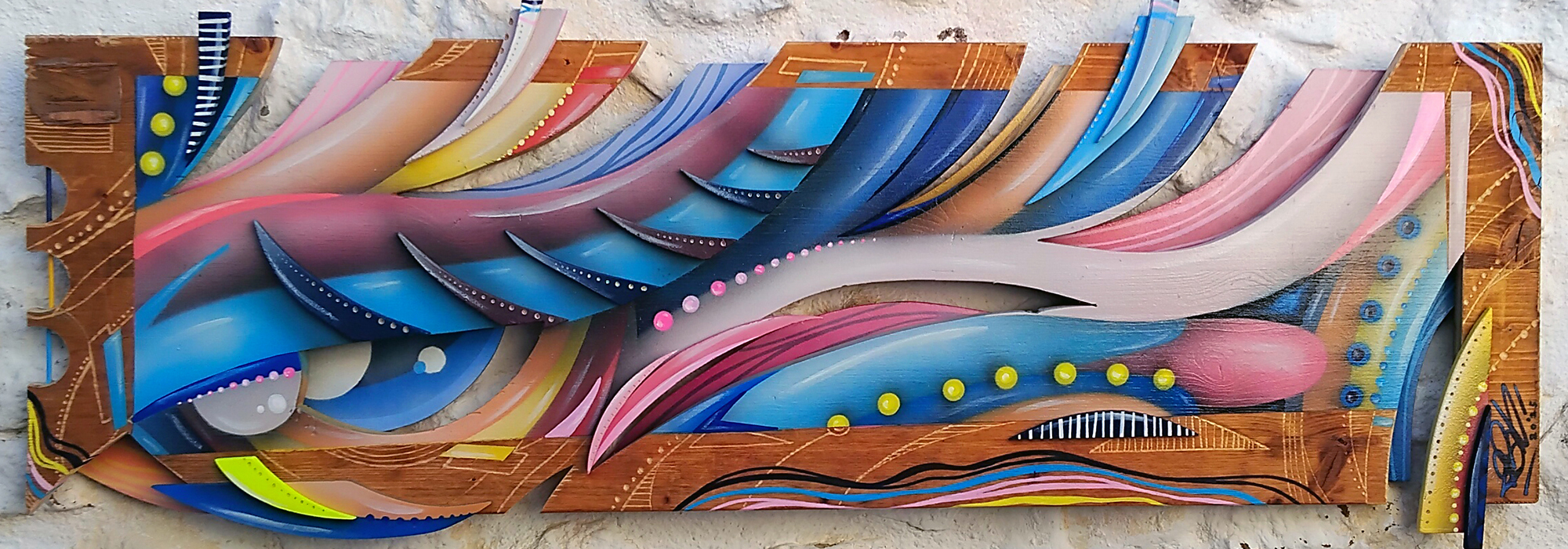 103 x 42 cm - Aérosol, Posca, Dremel sur bois.